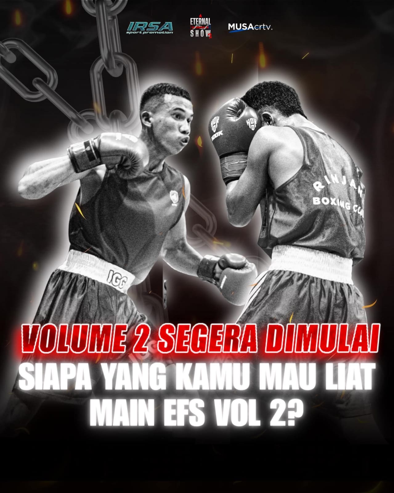 Eternal Fight Show (EFS) Volume 2 dipastikan akan hadir di Sumbawa Series, membawa atmosfer pertarungan yang penuh adrenalin dan semangat sportivitas.
